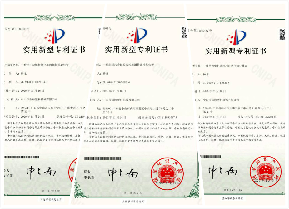 Chuangshuo plastic machinery qualification certificate (patent certificate)